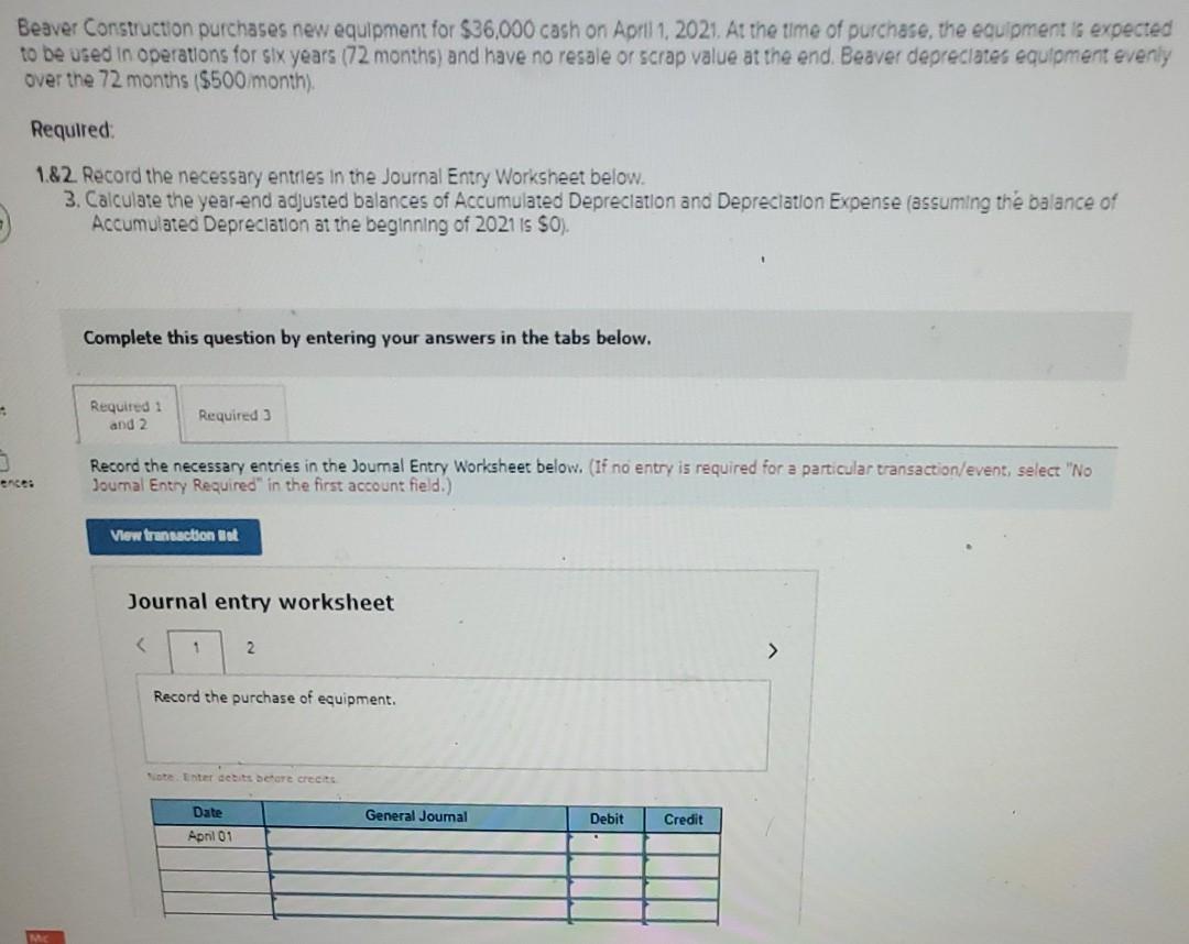Solved Beaver Construction Purchases New Equipment For Chegg Com